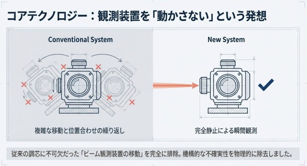 これまでの調芯作業における手間・時間・作業のバラつきといった課題を解消し、効率と精度を両立させる新しい測定ソリューションです。